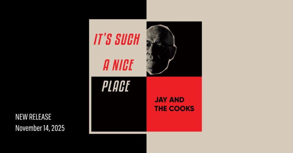 SUCH A NICE PLACE, Jay and The Cooks’ sixth album, will be released on February 27, 2026. This opus, composed of original works and urban legends by Jay Ryan, offers a daring mix of rock, folk rock, punk, blues, Americana, and offbeat country. The album’s release is preceded by five singles, the first of which, “It’s Such a Nice Place,” is available on November 14, 2025.